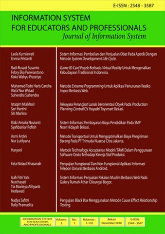 Susanto, Radi Rusadi and Prasetyo, Koko Wahyu and Purwiantono, Febry Eka (2018) Game ID Card Puzzle Berbasis Virtual Reality untuk Mengenalkan Kebudayaan Tradisional Indonesia. INFORMATION SYSTEM FOR EDUCATORS AND PROFESSIONALS, 3 (1). ISSN 2548-3587