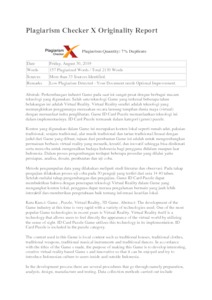 Perkembangan industri Game pada saat ini sangat pesat dengan berbagai macam teknologi yang digunakan. Salah satu teknologi Game yang terkenal beberapa tahun belakangan ini adalah Virtual Reality. Virtual Reality sendiri adalah teknologi yang memungkinkan penggunanya merasakan secara lansung tampilan dunia maya (virtual) dengan memanfaat indra penglihatan. Game ID Card Puzzle memanfaatkan teknologi ini dalam implementasinya. ID Card Puzzle termasuk dalam kategori (genre) puzzle. Konten yang digunakan dalam Game ini merupakan konten lokal seperti rumah adat, pakaian tradisional, senjata tradisional, alat musik tradisional dan tarian tradisional.Sesuai dengan judul dari Game yang dibuat, tujuan dari pembuatan Game ini adalah untuk mengembangkan permainan berbasis virtual reality yang menarik, kreatif, dan inovatif sehingga bisa dinikmati serta mencoba untuk mengenalkan budaya Indonesia bagi pengguna didalam maupun luar Indonesia. Dalam proses pengembangan terdapat beberapa prosedur yang dilalui yaitu persiapan, analisa, desain, pembuatan dan uji coba. Metode pengumpulan data yang dilakukan meliputi studi literatur dan observasi. Pada tahap pengujian dilakukan proses uji coba pada 30 penguji yang terdiri dari usia 14 – 40 tahun. Setelah melalui tahap pengembangan dan pengujian, Game ID Card Puzzle dapat membuktikan bahwa dengan penerapan teknologi Virtual Reality dalam Game yang mengangkat konten lokal, pengguna dapat merasa pengalaman bermain yang jauh lebih interaktif dan memberikan pengetahuan baik tentang informasi kearifan lokal.
