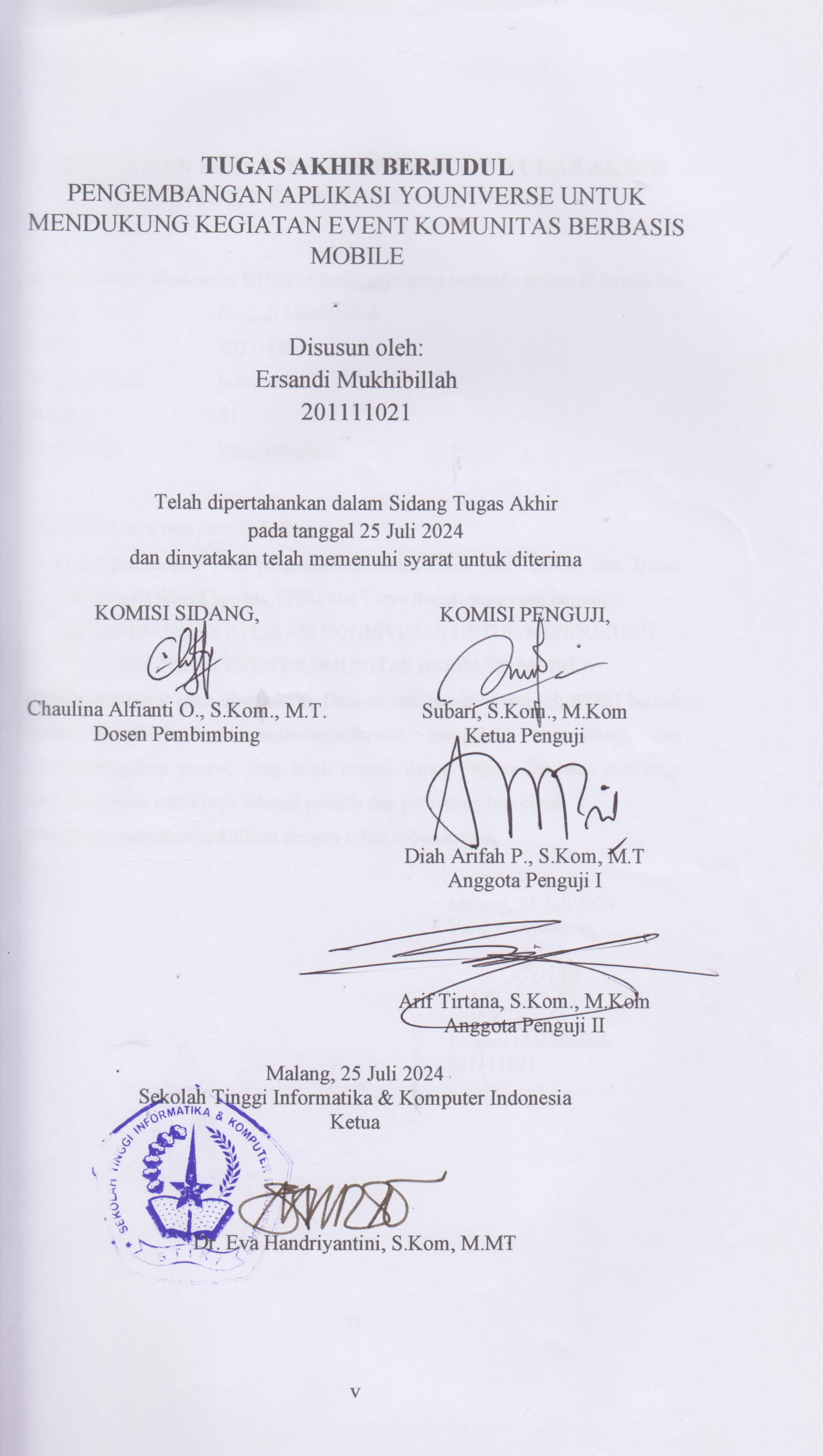 Ersandi, Mukhibillah (2024) PENGEMBANGAN APLIKASI YOUNIVERSE UNTUK MENDUKUNG KEGIATAN EVENT KOMUNITAS BERBASIS MOBILE. Sarjana thesis, Sekolah Tinggi Informatika & Komputer Indonesia.