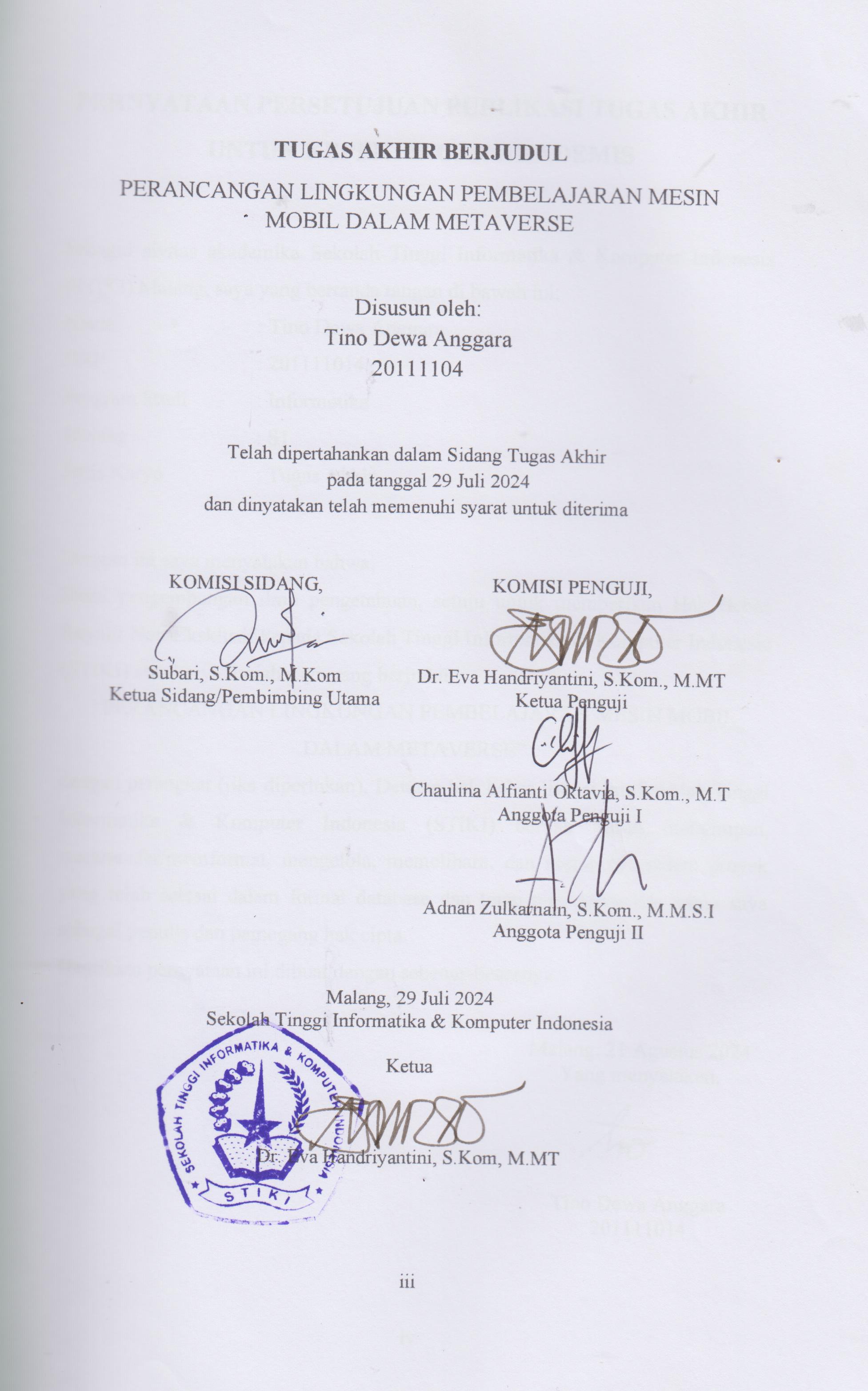TINO DEWA, ANGGARA (2024) PERANCANGAN LINGKUNGAN PEMBELAJARAN MESIN MOBIL DALAM METAVERSE. Sarjana thesis, Sekolah Tinggi Informatika & Komputer Indonesia.