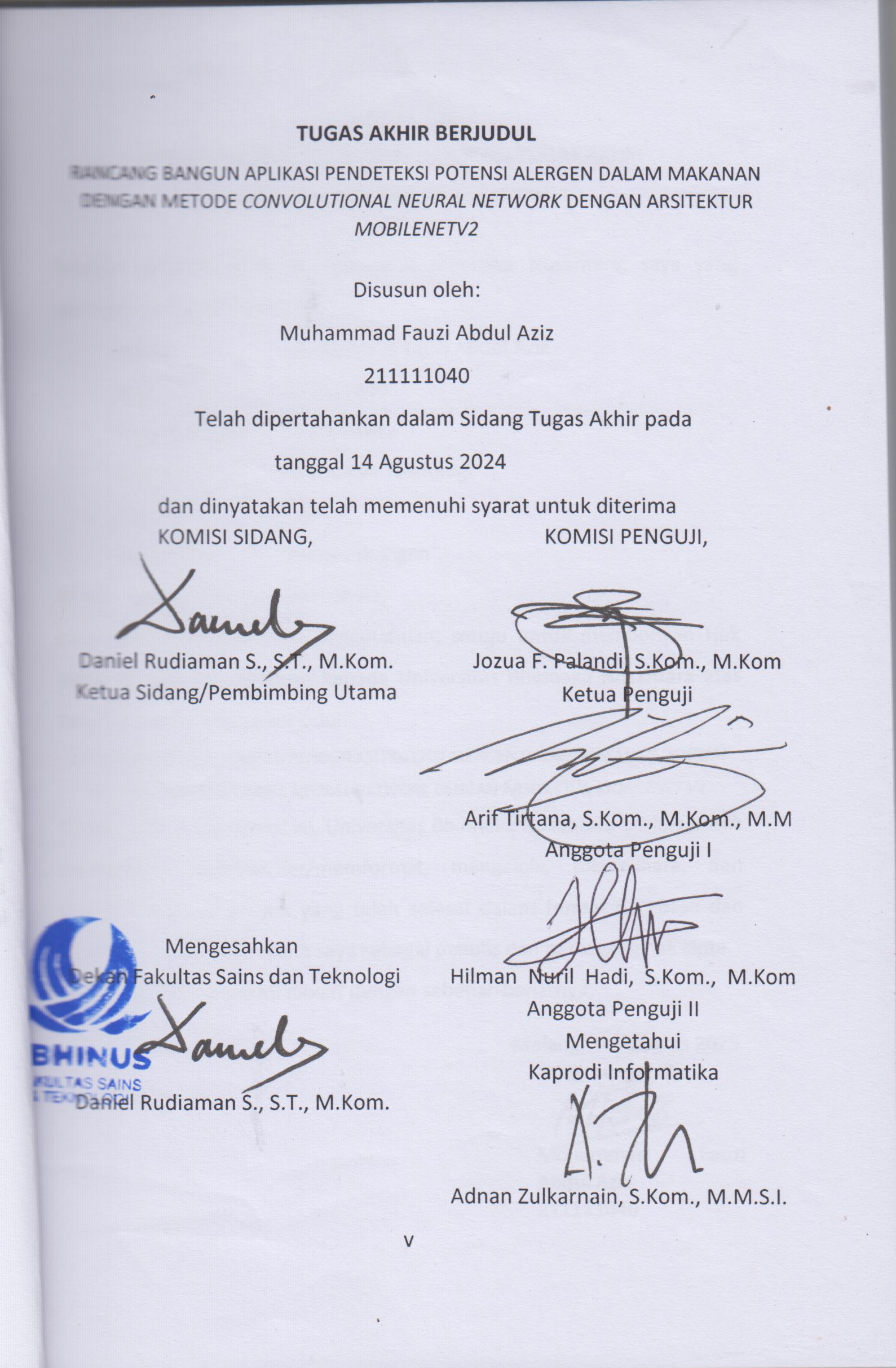Aziz, Muhammad Fauzi Abdul (2025) RANCANG BANGUN APLIKASI PENDETEKSI POTENSI ALERGEN DALAM MAKANAN DENGAN METODE CONVOLUTIONAL NEURAL NETWORK DENGAN ARSITEKTUR MOBILENETV2. Sarjana thesis, Universitas Bhinneka Nusantara.