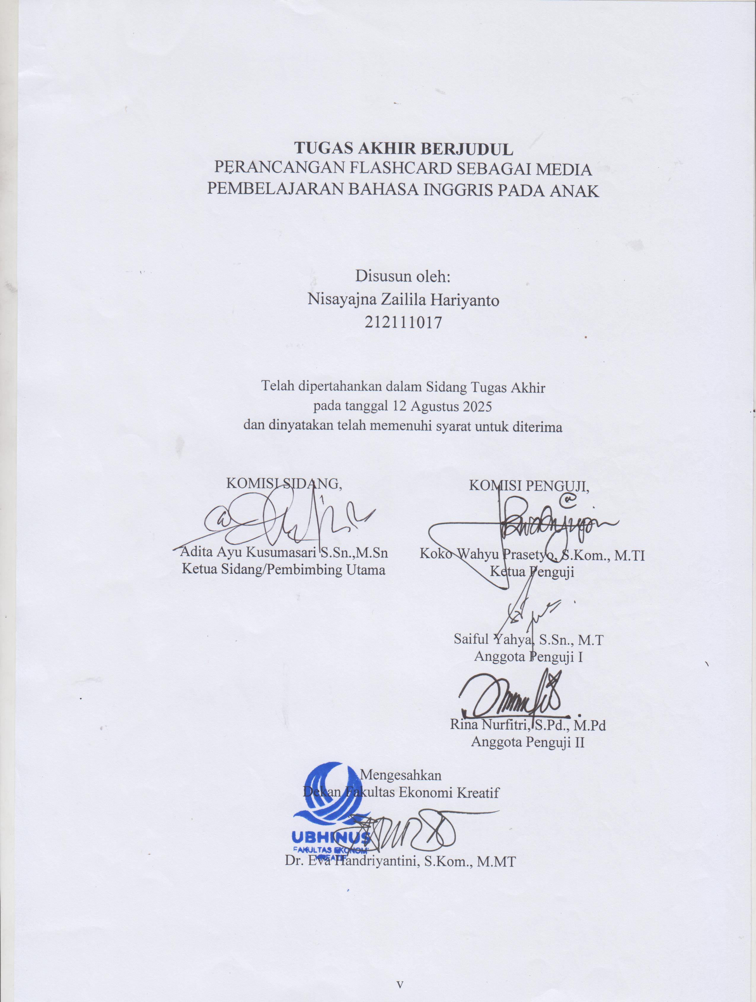 Hariyanto, Nisayajna Zailila (2025) PERANCANGAN FLASHCARD SEBAGAI MEDIA PEMBELAJARAN BAHASA INGGRIS UNTUK ANAK. Sarjana thesis, UNIVERSITAS BHINNEKA NUSANTARA.