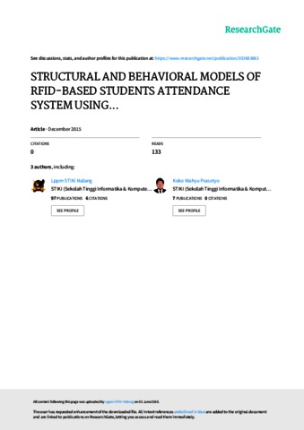 A student attendance management system is needed by higher education institution due to the fact that the students’ attendance are one of the critical factors which decide their academic achievement. The practice of managing the attendance based on the signatures collected on papers is considered inefficient. This paper presents a set of structural and behavioral models which can be implemented as a student attendance management system which utilizes RFID technology. The ability of RFID tags to promptly deliver accurate authentication information should improve the students attendance management process efficiency. The structural and behavioral models presented in this paper are using UML class diagram and sequence diagram notations. The models are developed based on the technical architecture of modelview-controller (MVC) pattern.