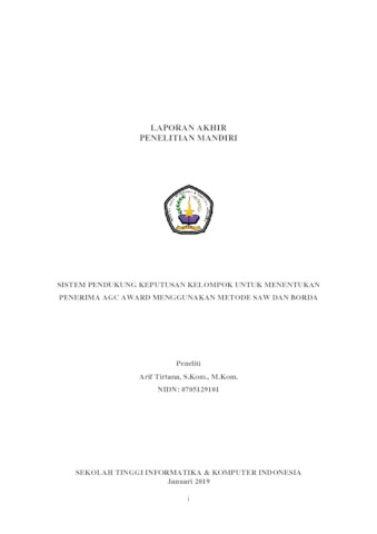 2018 - Arif Tirtana - Sistem Pendukung Keputusan Kelompok AGC Award.pdf Download (544kB) | Preview |