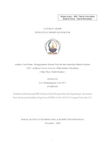 Evy, Poerbaningtyas (2018) Analisa Citra Panas Menggunakan Metode Wavelet dan Statistika Dalam Struktur ANN (Artificial Neural Network ) Pada Kanker Payudara. ( Pada Tikus Model Kanker ). LPPM STIKI Malang.