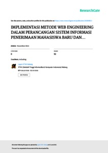 Novri, Hadinata and Devi, Udariansyah (2015) IMPLEMENTASI METODE WEB ENGINEERING DALAM PERANCANGAN SISTEM INFORMASI PENERIMAAN MAHASISWA BARU DAN TES ONLINE. SNATIKA 2015, 3 (3). pp. 1-15. ISSN ISSN 2089-1083