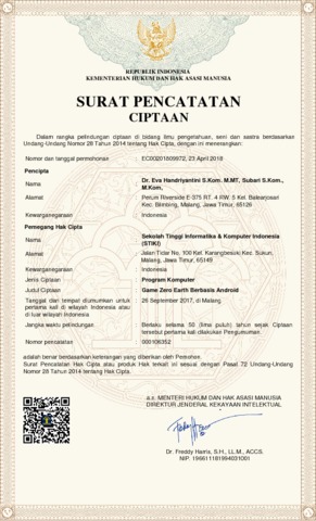 Eva, Handriyantini and Subari, Subari (2018) Game Zero Earth Berbasis Android. LPPM STIKI Malang.