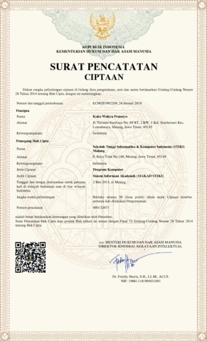 Koko Wahyu, Prasetyo (2019) Sistem Informasi Akademik (SIAKAD STIKI). LPPM STIKI Malang.